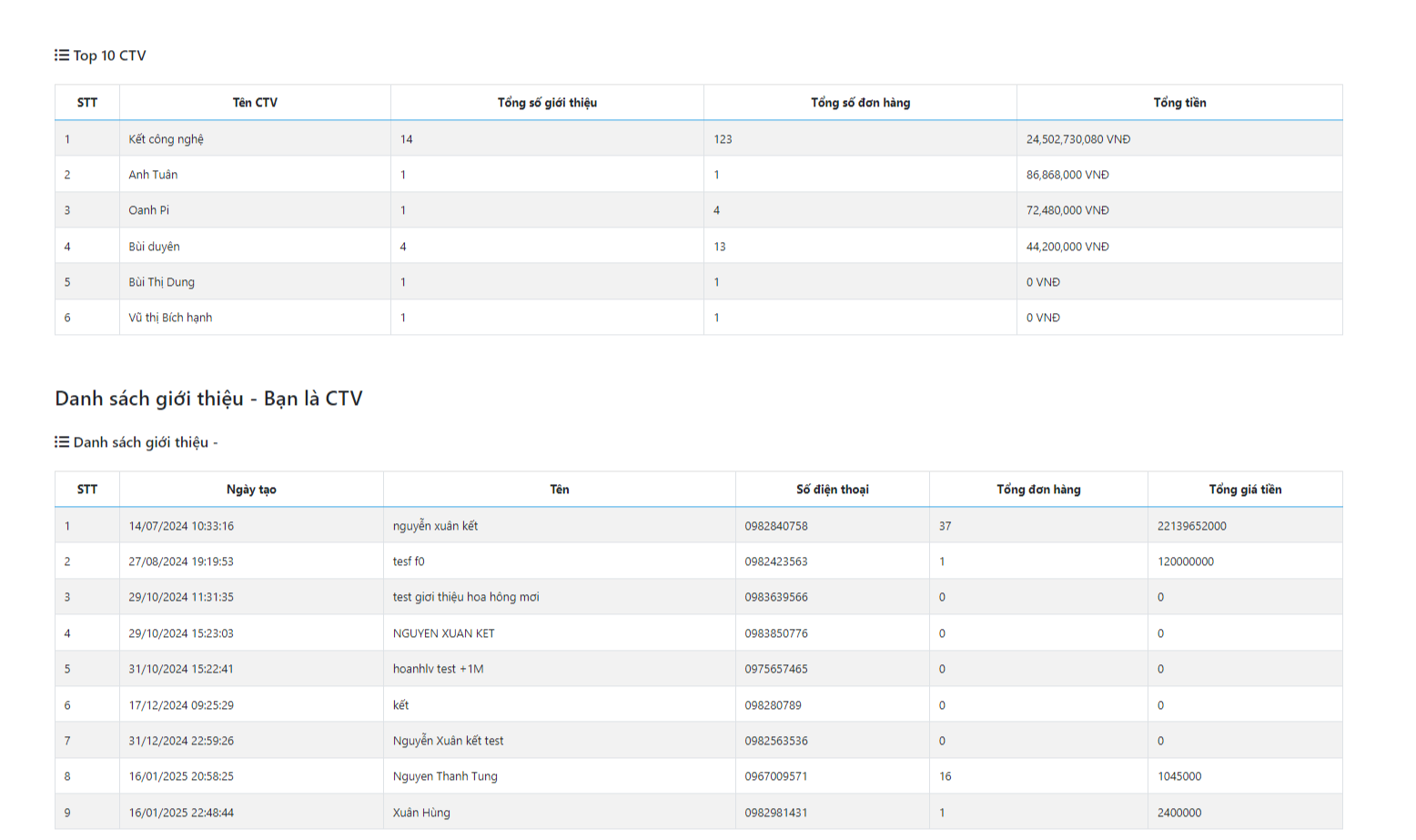 Danh sách giới thiệu - Bạn là CTV: là danh sách giới thiệu cấp cộng tác viên bạn có