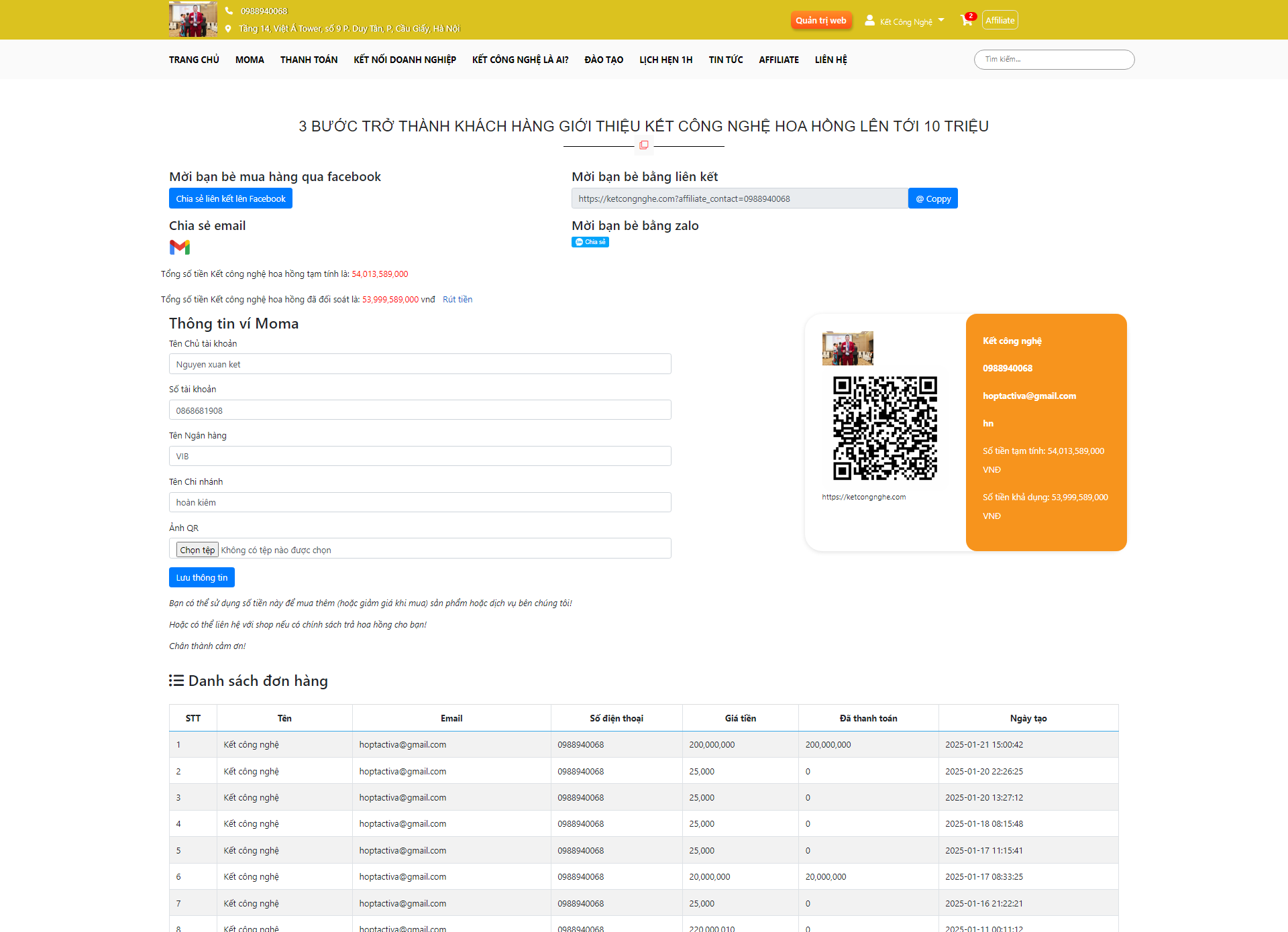 • Người được giới thiệu khi đăng ký từ link của bạn, sau này họMua hàng  gói lúc nào thì bạn cũng được nhận hoa hồng